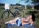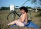 Приятная голенькая велосипедистка. Выехала на природу с игрушками. ;)