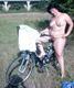 Эта дама любит не только кататься на велосипеде, но и с удовольствием демонстрировать свои пышные округлости.