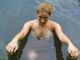 Классно позирует эта обнажённая девица в тихой речушке купаясь!