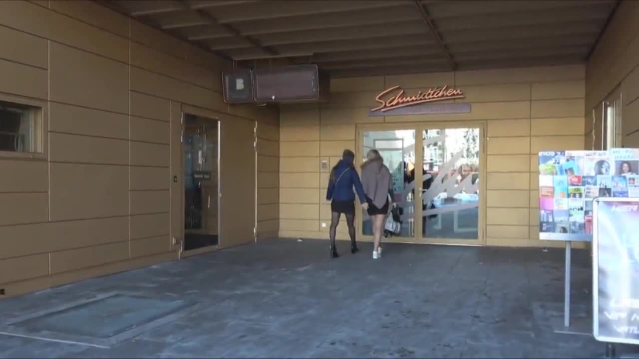 Две девушки прячутся на подземной автостоянке, одна трахает другую, засунув руку ей в попку.