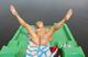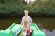 Загорает и позирует лёжа на катамаране