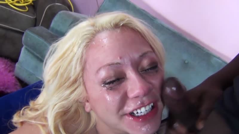 Черный и белый член трахают её рот