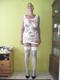 позирует в белом эротическом платье и белых чулках