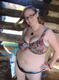 приятная пышка демонстрирует свою небритость и большие сиськи.