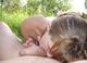 Молодая парочка уединилась на природе, и похотливая страстная рыжая сосочка стала заниматься членом парня с нежностью.