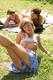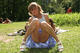 Девушка без трусов позирует на поляне, вблизи отдыхающих рядом людей.