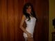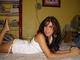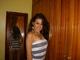 Милая згорелая красотка скромненько позирует в домашней обстановочке.
