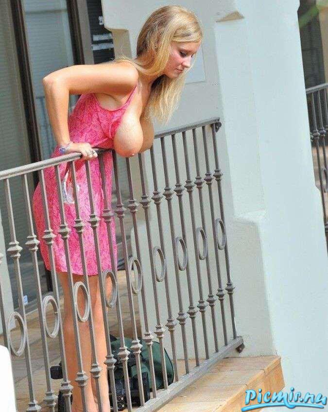 Голенькая на балконе пятиэтажки порадовала на втором слайде!
