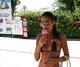 Видимо даже в нескромном купальнике она чувствовала себя неуютно!