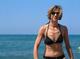 Зрелая женщина на пляже и дома
