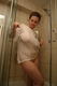 Роскошная женщина не снимая футболки решила помыться под душем.