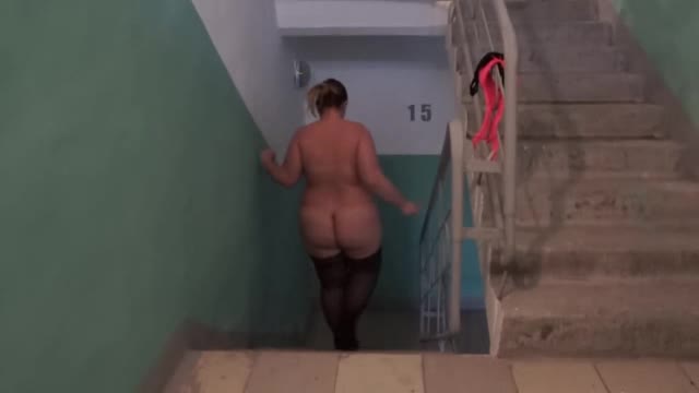Сексуальной пышечке захотелось экстрима, вот и разделась в подъезде.