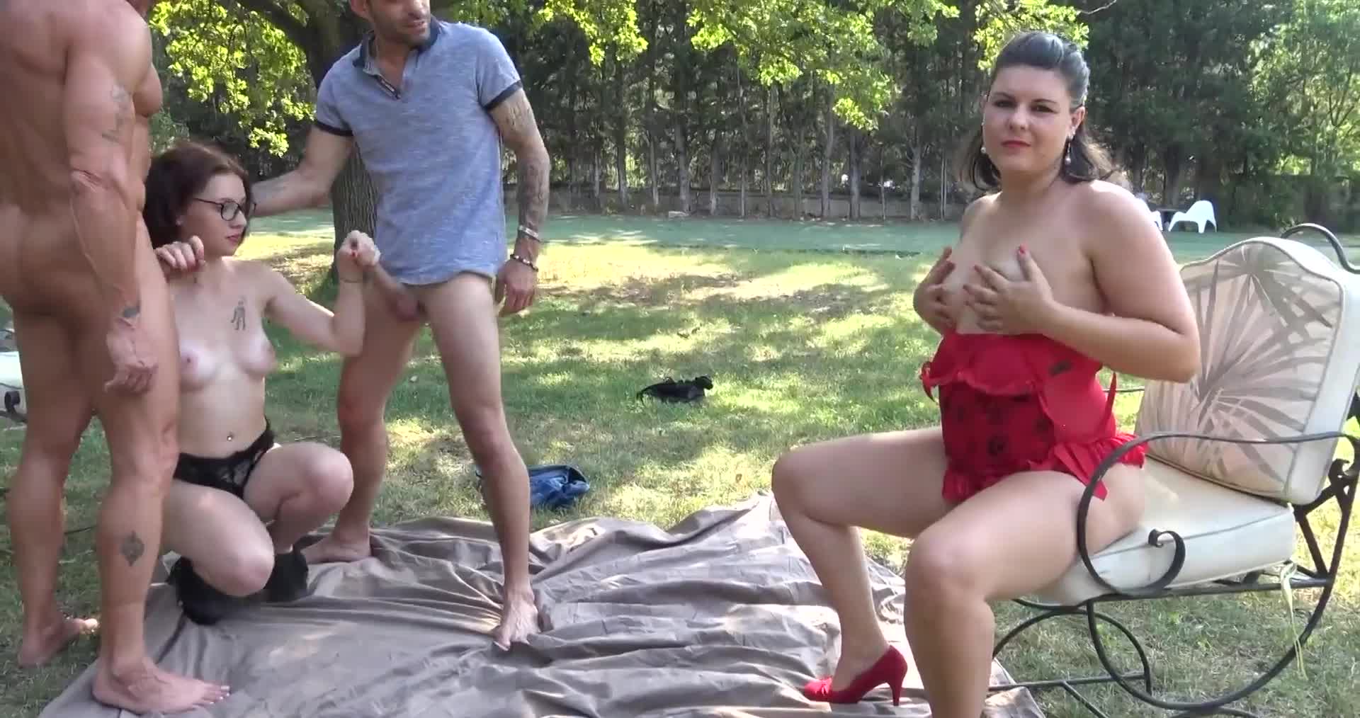 Компания из четырех человек устроила сексуальную оргию на лоне природы...