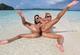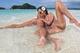 Две красотки на мелководье решили принять загар и поласкать друг друга
