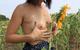 Классно выглядит эта брюнеточка среди зрелых подсолнухов!