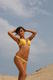 Шикарно позирует прекрасная брюнетка с загорелым телом в песках.