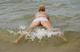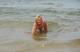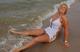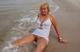 Весьма раскрепощённая женщина позирует в волнах и на песочке