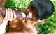 Симпатичная девушка в гламурной кепке отдается двоим на природе.