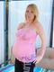 По домашнему.И без выкрутасов. Розовая майка сидит секси.