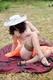 скромняшка, лежит голая в поле, а ножки так и не раздвинула =3