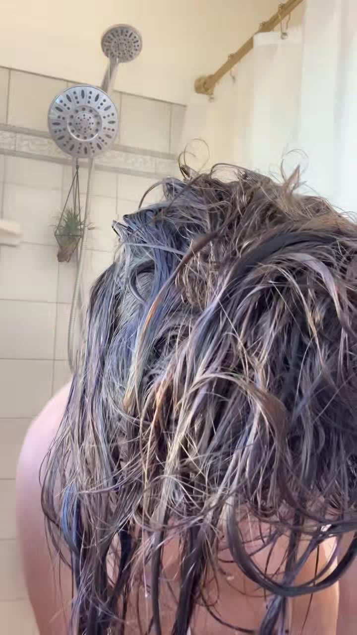 Девушка перед видео камерой моется в душе.