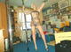 Зрелая блондинка продолжает позировать рядом с шестом. Теперь она сетчатых "платьях"