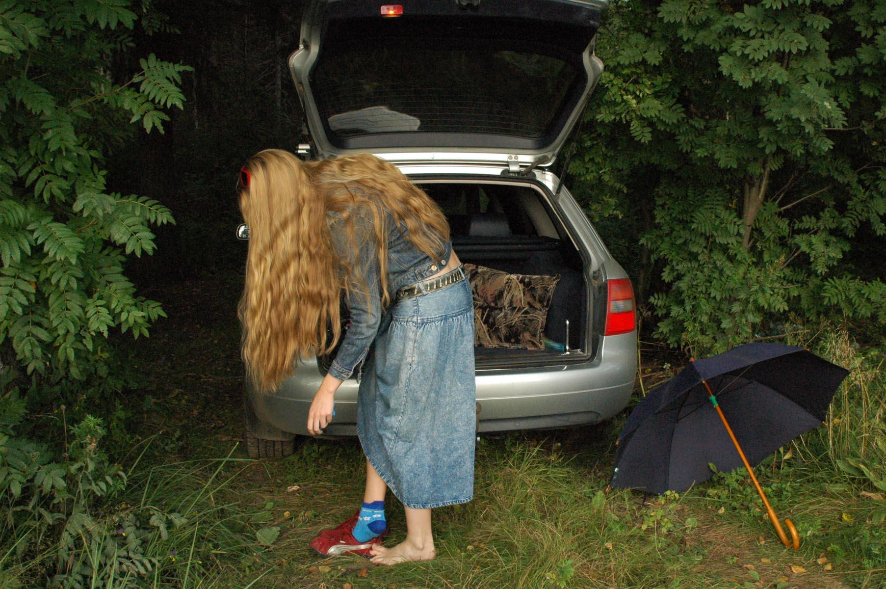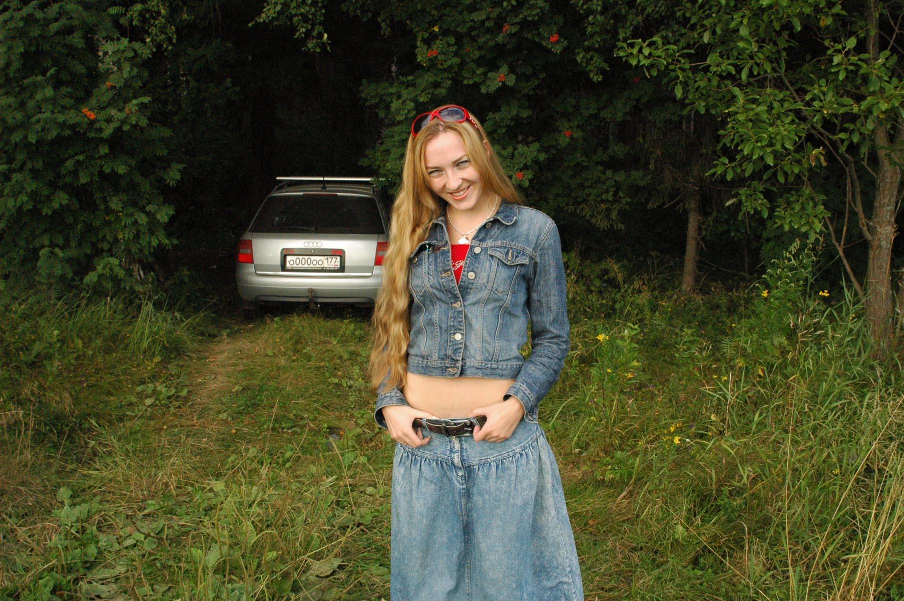 Очарован баловничкой Асей на природе у машины озорничающей голой на камеру!