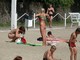 Девочки изголяются на пляже для привлечения внимания.