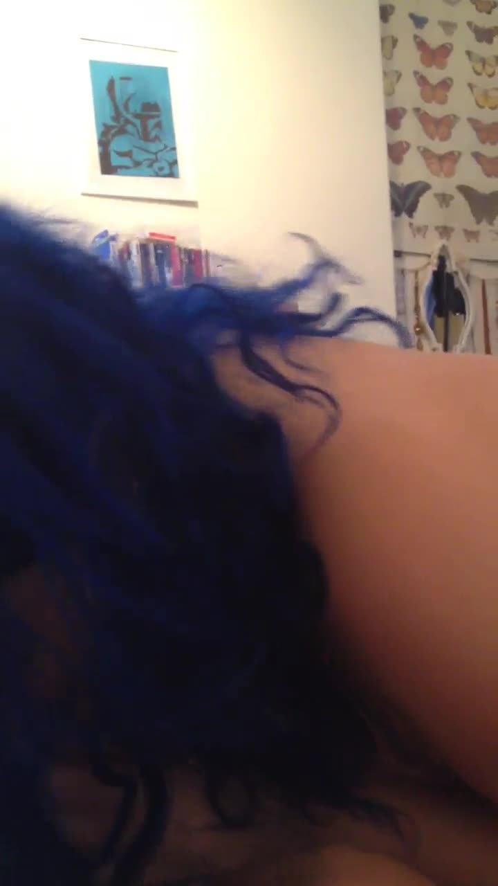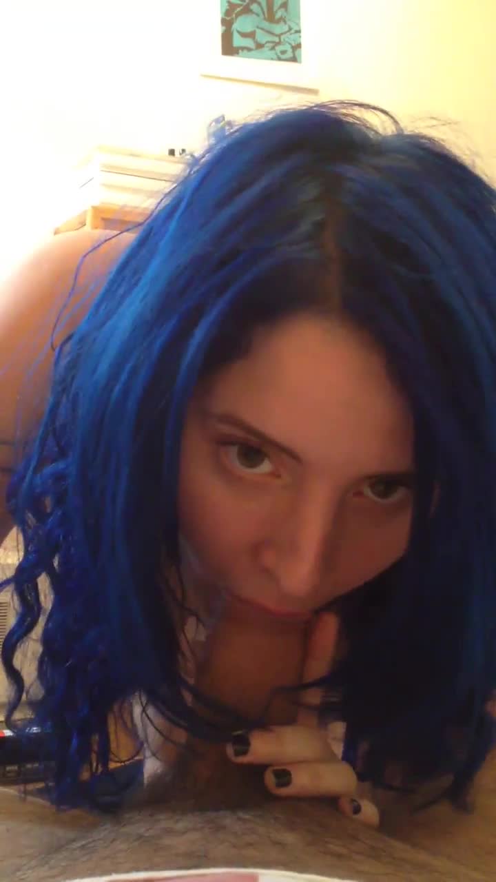Хорошо сосет эта девочка с голубыми волосами!