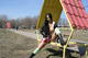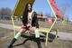 Брюнеточка гуляет на улице и проветривает киску