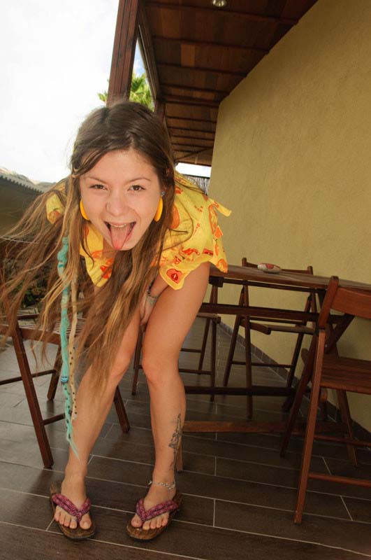 Симпатичная девочка в пижамке очень скромно показывает свои прелести...
