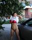 старается распахнуть плащ на голом теле или задрать юбку повыше.