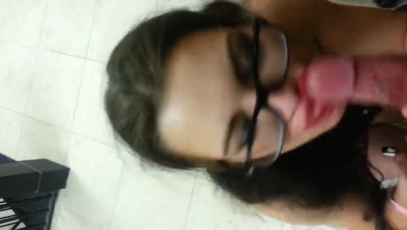 Очень сексуальная девушка, возбужденная от того, что ее могут увидеть, делает минет. Боясь быть замеченной она отбегает от парня, но потом вновь становится на колени.