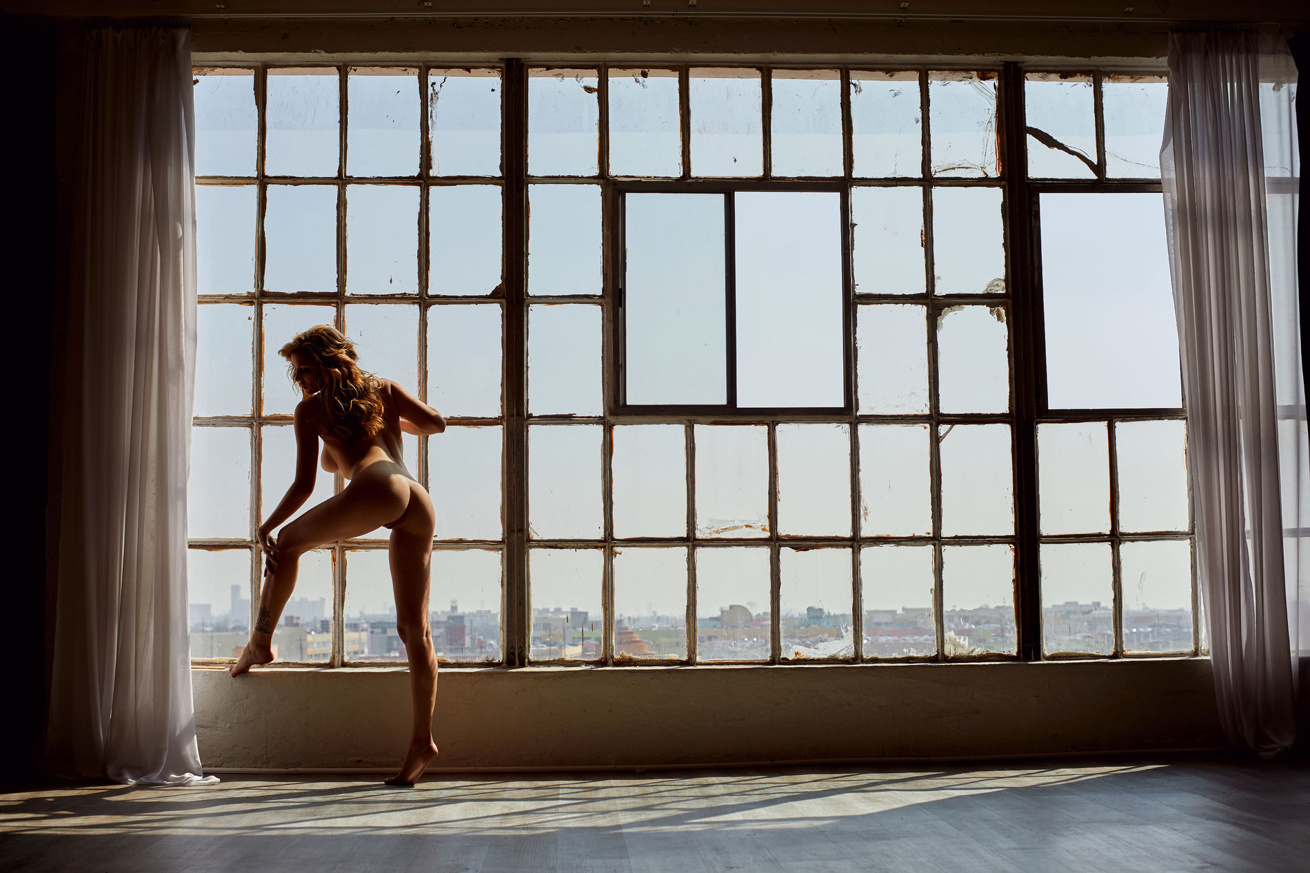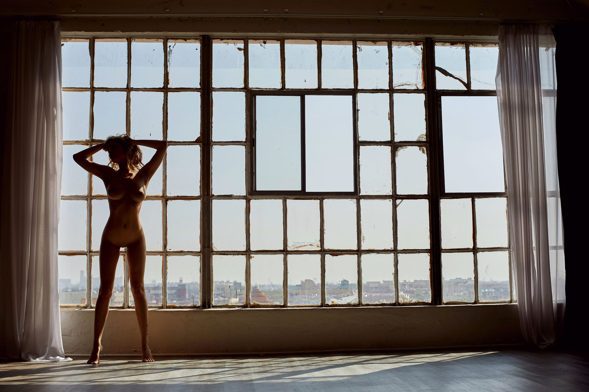 фотографии голой блондинки позирующей возле окна
