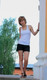 Девушка с короткой стрижкой демонстрирует свою стройную фигуру дома и среди зелени.