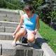красоточка в юбочке и маечке солнечным бнем помочилась на ступени