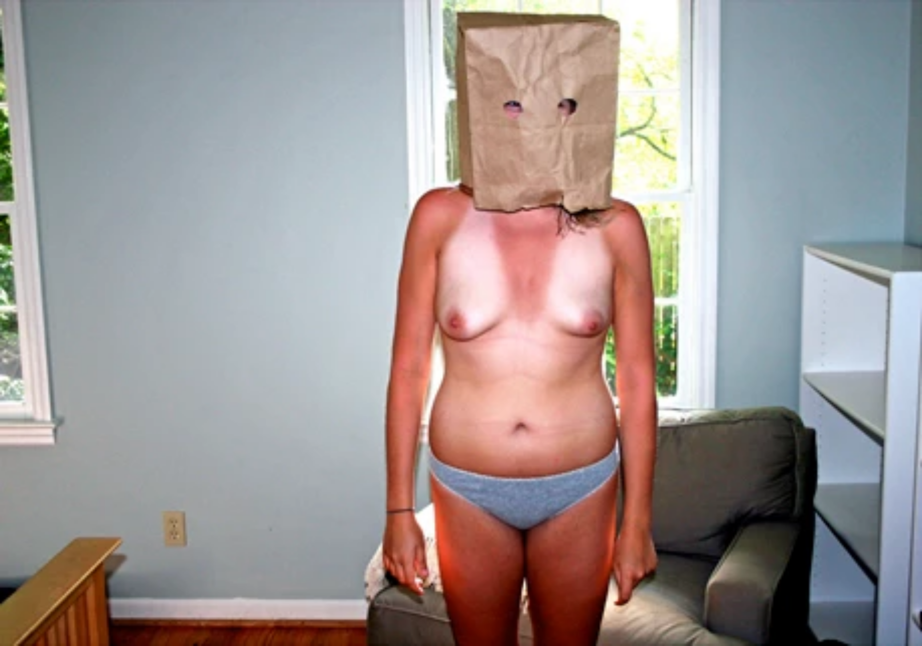 Портреты женщин с бумажными пакетами на головах