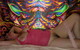 Захотела сделать фото как она снимает свои розовые трусы под ярким цветным пологом.