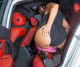 Смуглянка в этом красном салоне чувствует себя как дома.