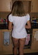 Женщина перед сном пока ещё на кухне, в одной белой блузке.