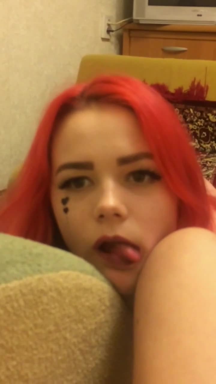 Красиво рыженькая девица выпрашивает чтобы ее удовлетворили.