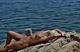 Развратница снова продолжает нежиться на теплом солнышке и демонстрировать себя.