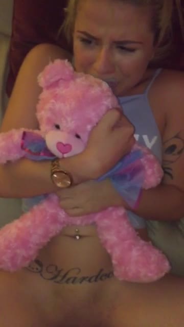 Так в этого медведя вцепилась. Хотя наколка у неё хардкор. Похоже, она нижняя.