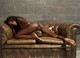 Стройная шоколадка очаровательно позирует на шоколадном диванчике!
