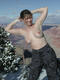 позирует голышом на фоне каньёна.