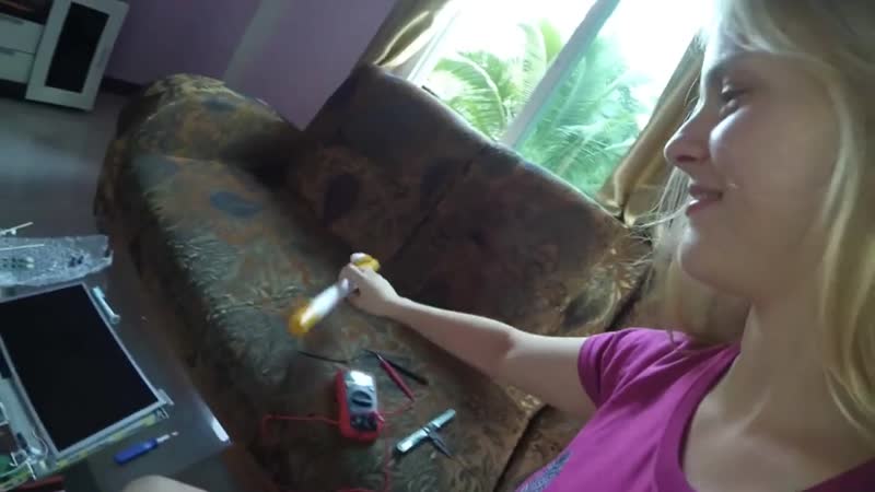 Выбрала необычный предмет для мастурбации .