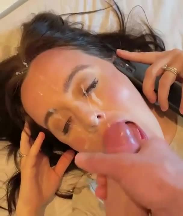 Куколд слушает как его жене спускают на лицо.