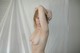 Красивая девушка показала висячие груди около простыни