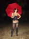Красный зонт, красочный контраст. Чёрной гамме белья.