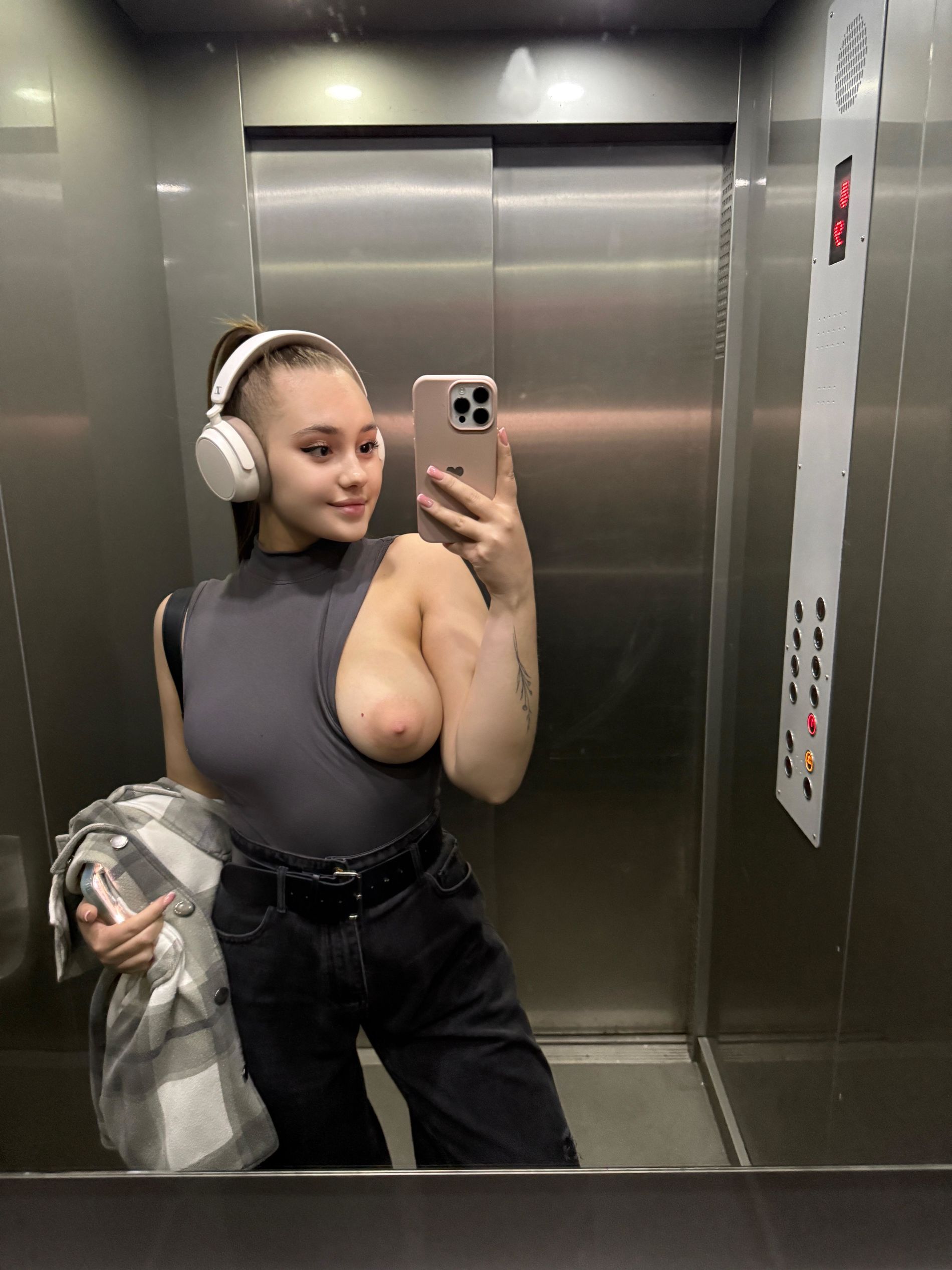 Красивая милая девушка показывает свою идеальную грудь и не только